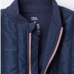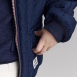 Designed for school, winter vacays and weekends at Grandma's. Meet the quilted bomber. Light-weight for chilly days turned to cold nights. Two otter pockets, snacks and rocks not included. Ribbed neckline, cuffs and hem. Fuss free, no excuses. Jersey-lined inside for easy layer. Zip-front with faux leather zipper pull tab = I do it myself. Toddler-friendly taglessness? No question.