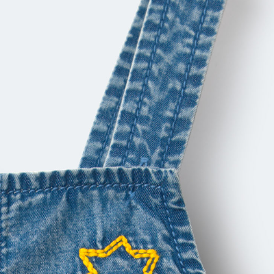 Summer vibes, unlocked! This chambray shortall is a toddler's dream. Soft fabric? Check. Easy on, easy off? Double check. Perfect for park adventures or café outings. Side pockets and embroidery make it even more special.