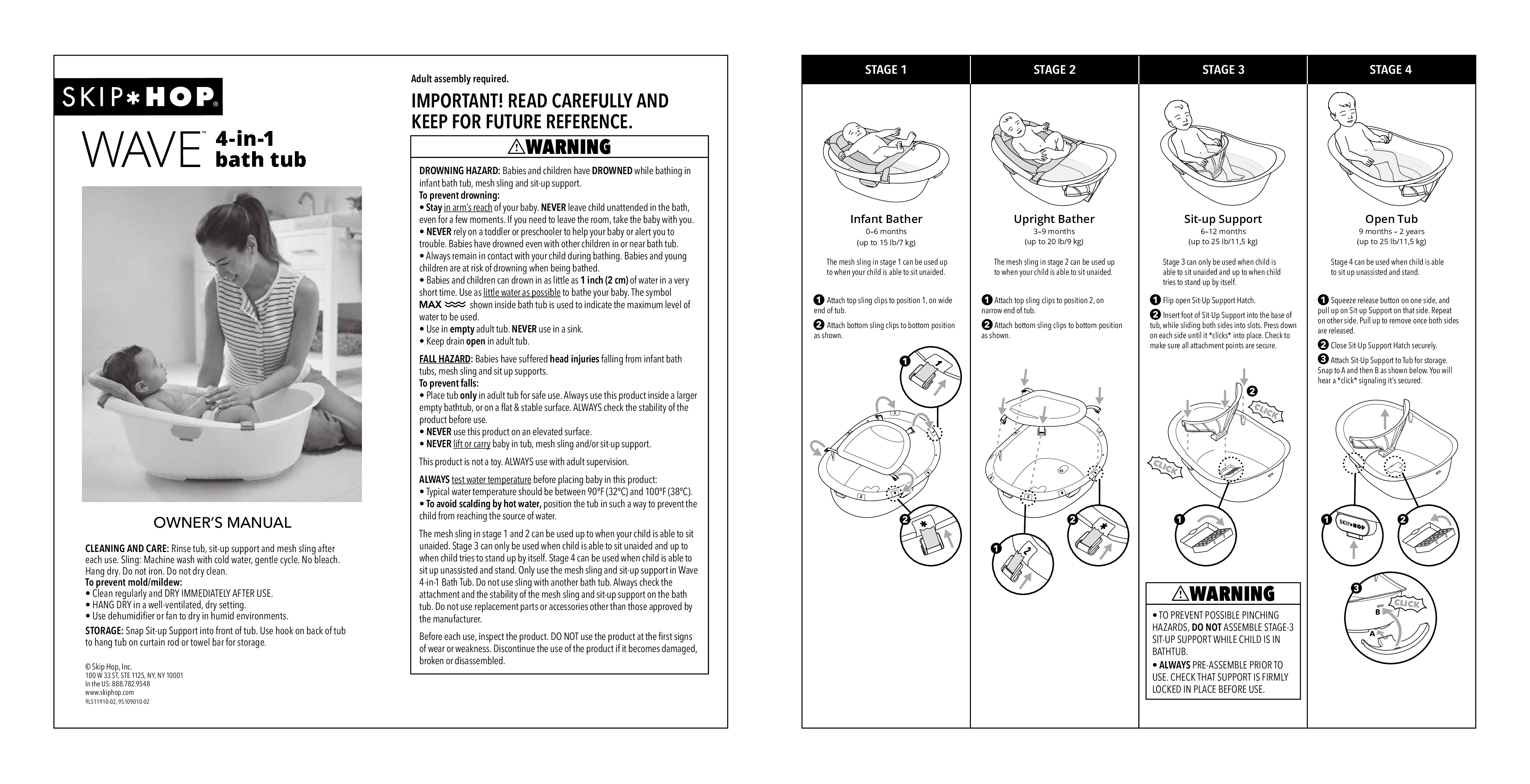 Designed to grow with baby in four stages—from infant to toddler—meet the only tub parents need! Filled to the brim with innovative details for baby’s comfort, our Wave 4-in-1 Baby Tub includes a supportive sling that can be used in two positions to help make infant bathing easier and less stressful for both parents and baby. As baby grows, remove the sling bather and add the included sit-up support insert to help little ones stay comfortably seated in the tub. Once your little one is able to sit up without support, use the tub on its own. The spacious, yet streamlined design features higher sides for extra splashing space (and extra tub time fun)!