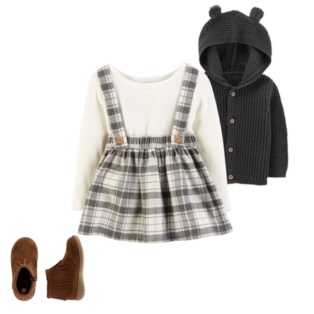 Perfect for her holiday parties, this 2-piece set features a long-sleeve cotton bodysuit and a plaid flannel suspender skirt for the cutest of styles!