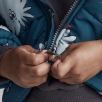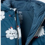 Hoping, wishing for a snow day. Heavyweight. Thick and soft. This is his puffer. Squish allover from hood to hem. Two side zipper pockets with novelty lining. Zip-front design with pleather pull tab. Easy on little fingers. Jersey lining inside for easy layering. Toddler-friendly taglessness? No question.